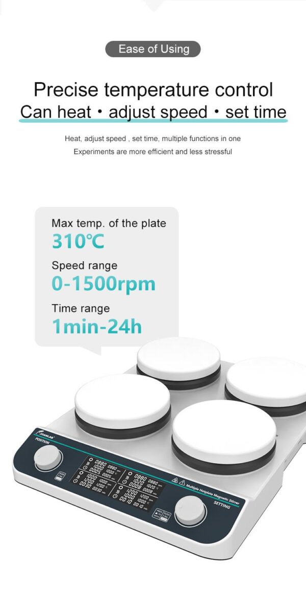 | JOANLAB HHMS-4Max Çoklu Isıtıcılı Manyetik Karıştırıcı 50… 1500 rpm / 4 x 500 mL / RT… 3100 °C |