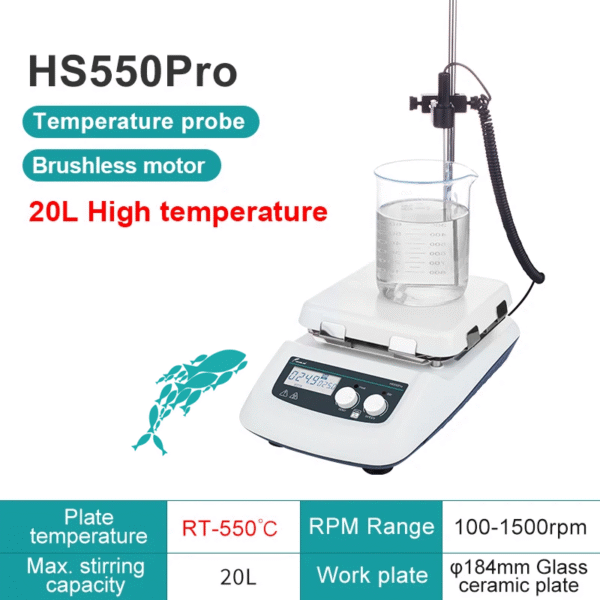 HS550Pro, çeşitli deneysel ihtiyaçları karşılamak için geliştirilmiş yüksek ısı dayanımlı ısıtıcılı manyetik karıştırıcı.
