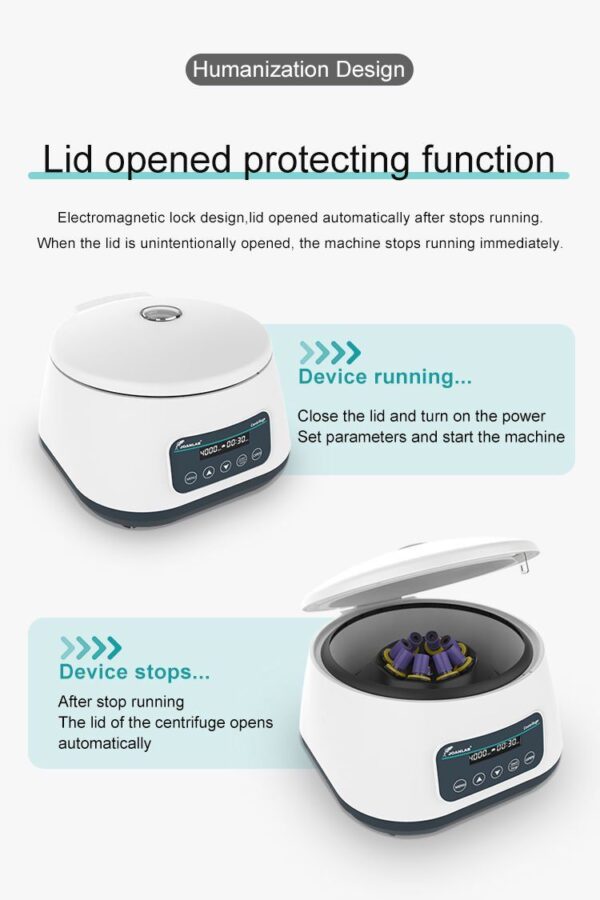 | JOANLAB LC-400; Kan ve santrifüj tüplerini düşük devirlerde çevirmek için geliştirilmiş hız ve zaman ayarlı düşük hızlı santrifüj cihazı. Kullanın alanına göre roor seçimi yapılmalıdır. Rotor cihazdan ayrı olarak satılır. 1. Ayarlanabilir hız 2. Zamanlama fonksiyonu 3. Büyük kapasite 4. Açık kapak koruması 5. Sessiz ve düşük gürültü 6. Sabit çalışma 7. Görüntüleme penceresi 8. Elektronik kilit |