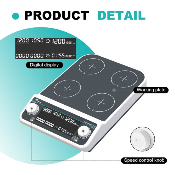 Öncelikle, JOANLAB MMS4Pro 4 bölmeli manyetik karıştırıcı laboratuvar çalışmalarınızı kolaylaştırıyor. Özellikle, her bölmesi bağımsız çalışabilen bu cihaz, 50-1500 rpm hız aralığı sunuyor. Dahası, 4 x 500 mL karıştırma kapasitesiyle yüksek verim sağlıyor. JOANLAB MMS4Pro, LCD ekranı sayesinde kullanımı son derece pratik hale getiriyor. Sonuç olarak, bu ürün laboratuvarlar için tam anlamıyla ideal bir seçim oluyor. Aynı zamanda, anti-korozif PET plakası dayanıklılık sunuyor.