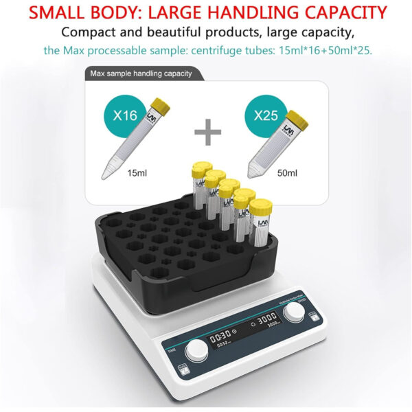 - Yüksek Kapasite: Buna ek olarak, 50 numuneyi aynı anda karıştırabilirsiniz.