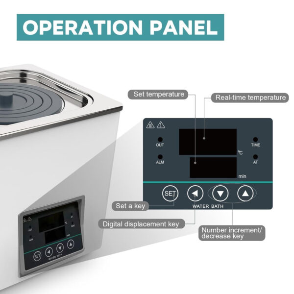 Öncelikle, JOANLAB WB100-4F Su Banyosu stabil ısı dağılımıyla laboratuvar çalışmalarınızı kolaylaştırıyor. Özellikle, RT +5 ile 99.9°C arasında hassas sıcaklık kontrolü sunarak verimli sonuçlar sağlıyor. Dahası, paslanmaz çelik iç tankı sayesinde dayanıklılık ve homojen ısı dağılımı garanti ediyor.